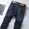 Spring and Autumn Jeans Straight Loose Fleece Thickened Warm Business Elastic Casual Pants