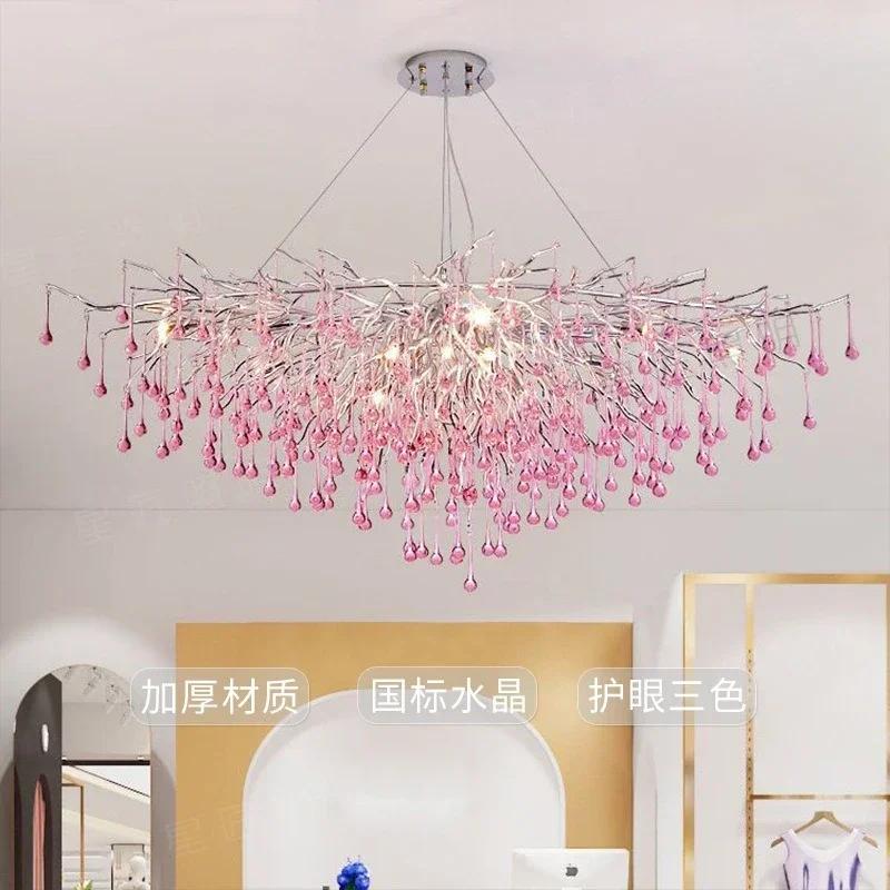 Hot Sales Luxury Chrome Chandelier - Pink Crystal Water Drop Design for Living Room Ceiling, Elegant Indoor Decor Lighting