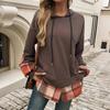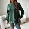 Női Tavaszi Őszi Kontrasztos Színű Alkalmi Álszakított Kétrészes Összevarrt Kapucnis Hosszú Ujjú Pulóver Kapucnis Felső