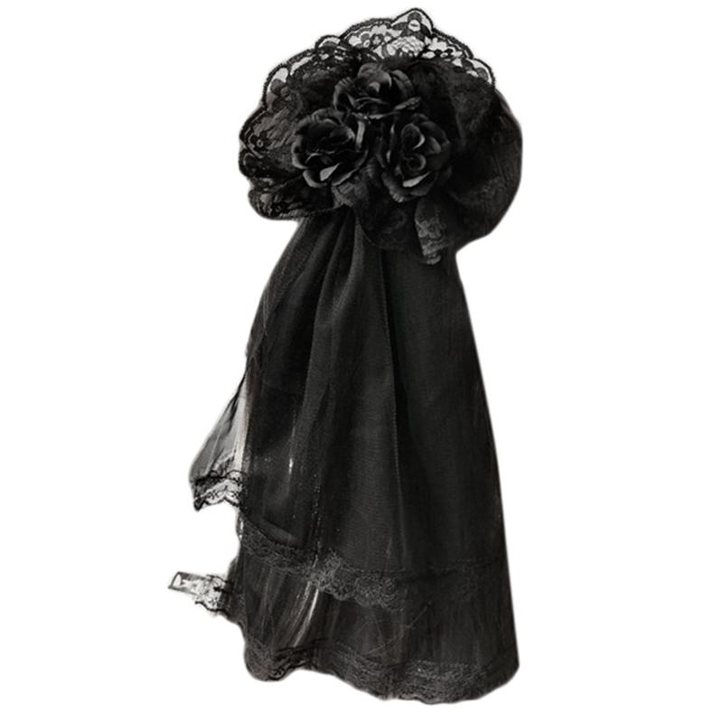 Lolita Gothic Headdress Lace Veil Headwear Rose Side Clip Barrette Halloween Cosplay Accessories Party Headpiece