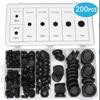 170 darabos fekete gumigyűrű készlet vezetékvédelemhez
