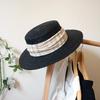 European And American Retro Black Straw Woven Flat Top Top Top Hat Women'S Summer Sunshade Sun Protection Beach Vacation Straw Hat Sun Hat