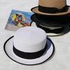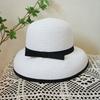 Korea Foreign Trade Summer French Wide Brim White Black Flat Top Straw Hat Women'S Sunshade Sun Hat Panama Top Hat
