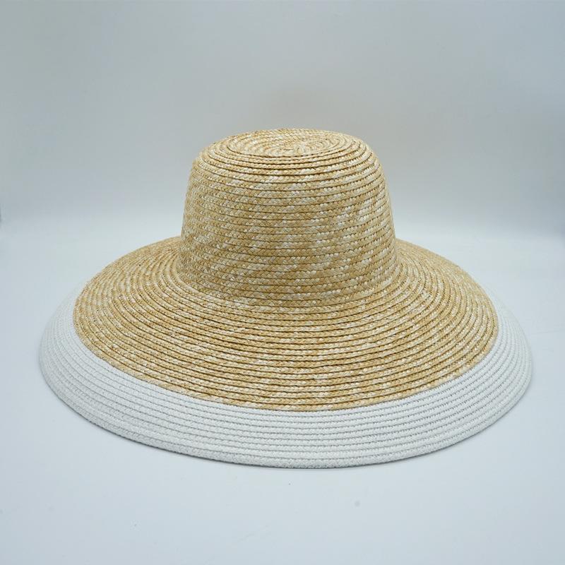 French Retro Straw Splicing White Big Brim Sunshade Sun Protection Beach Straw Hat Women'S Vacation Travel Top Hat Summer