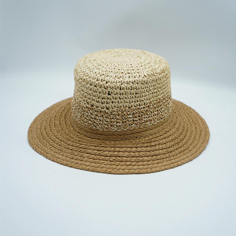 Korean Japanese Weaving Splicing Gradual Change Beige Casual Flat Top Top Hat Men And Women Summer Sunshade Sun Protection Beach Straw Hat