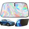 Car Windshield Sun Shade,5-Layer Reflective Blocks UV & Heat,Heavy Duty Foldable Sunshade With Metal Frame, Iridescent Color Keep Car Interior
