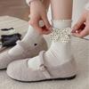 Milk White Medium Tube Socks Women'S College Style Stacking Socks Bow Fungus Edge Socks
