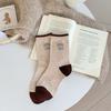 Korean Striped Cloth Label Cute Bear Mid-Tube Socks Contrasting Boneless Cotton Socks