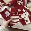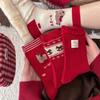Wool Socks Women Cartoon Cute Cat Mid-Tube Socks Diamond Plaid Lace Pile Socks Red Socks