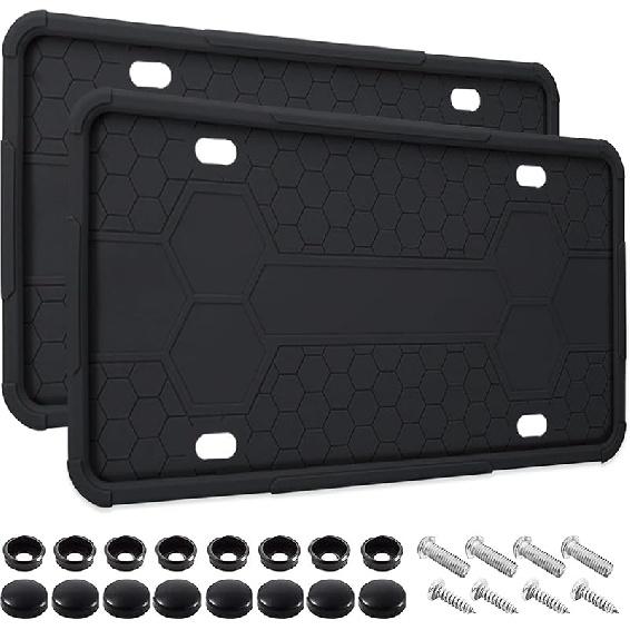 2 Pack Silicone License Plate Frames Black, Car Plate Frame Holder, Universal US Front & Rear Truck Frame Protector Mounting Kit Accessories, Rust