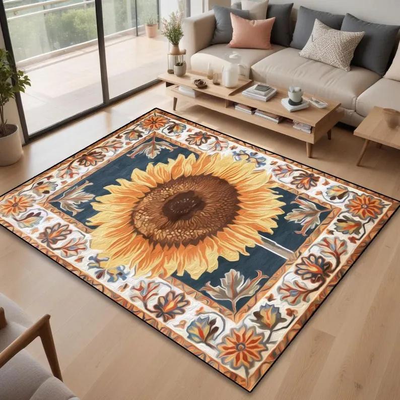 Sunflower Rug Living Room Rug Elegant Sunflower Rug Nature Inspired Sunflower Rug Vibrant Colorful Floral Design Living Room
