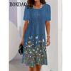2025 Fashion Trend 3D Imitation Denim Pattern Women's Dress Summer Sreet Short Sleeve O-Neck Loose Casual Flowers Print Dresses