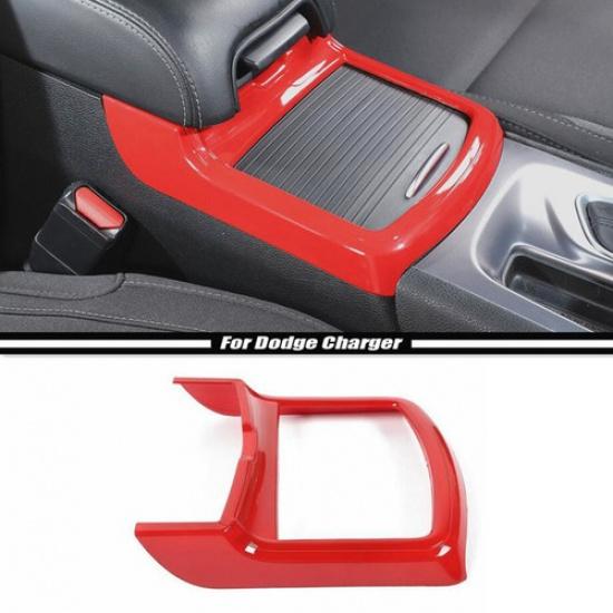 For 2011- Dodge Charger ABS Red Interior Central Cup Holder Frame Trim Cover