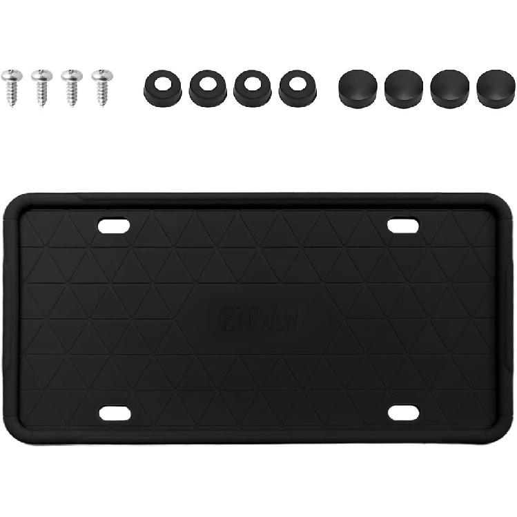 Silicone License Plate Frame, Rust-Proof Rattle-Proof Front Back License Plate Cover With Drainage Holes, Weather-Proof Car Plate Bracket Holder With