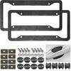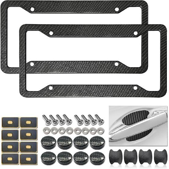 Carbon Fiber License Plate Frames- Black Carbon Pattern Aluminum Front & Rear Car Tag Holder Cover 2 Pack With Mount Hardware, Screws, Caps,
