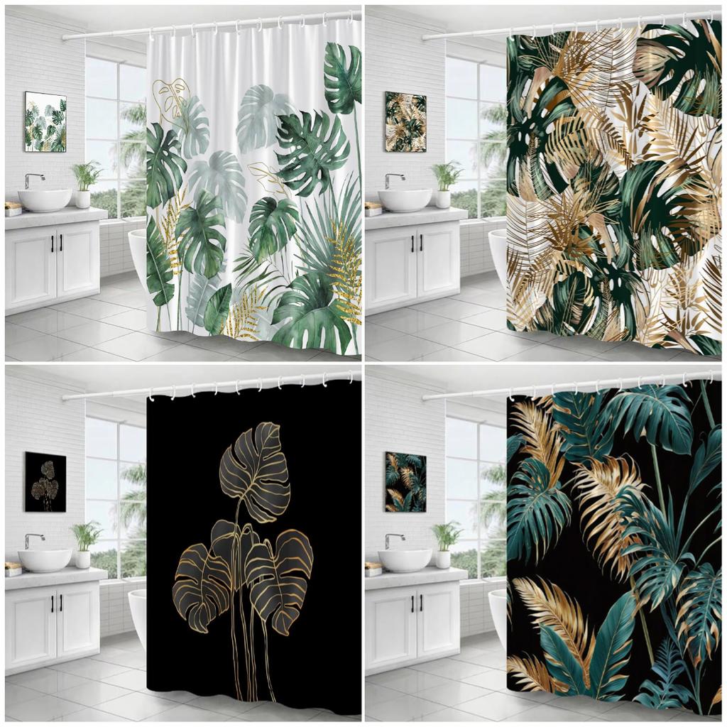 Trópusi Levelek Zuhanyfüggönyök Fekete Arany Levelek Zöld Levél Botanikai Dzsungel Pálma Monstera Fürdőszobai Függönyök Kád Szövet Dekoráció
