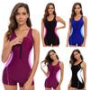 Women's Sports Swimsuit Conservative Colorblock Sleeveless Surfer Backless Swimsuit