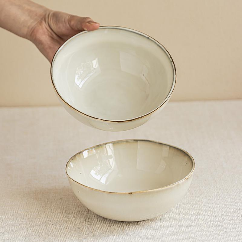 Salad Bowl Stroke Ceramic Bowl Household Bowl Noodle Bowl Vegetable Bowl Fruit Bowl Minimalist Style Round Tableware Breakfast Bowl