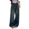 Women's loose-fitting denim jeans, wide-leg jeans, plus sizes, high-waisted, flattering legs, stylish, blue-gray, size S, spring, summer, and autumn.