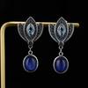 Vintage Bohemian Sapphire Long Pendant Earrings for Women's Vacation Jewelry