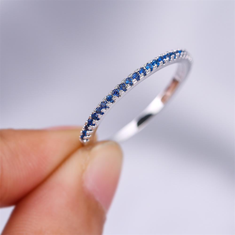 Blue Crystal Small Round Stone Stacking Rings For Women Vintage Silver Color Wedding Bands Engagement Jewelry Minimalist