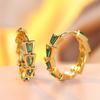 Geometric Stone Green Crystal Round Hoop Earrings For Women Vintage Gold Color Ear Buckle Wedding Jewelry Bridal Engagement Gift