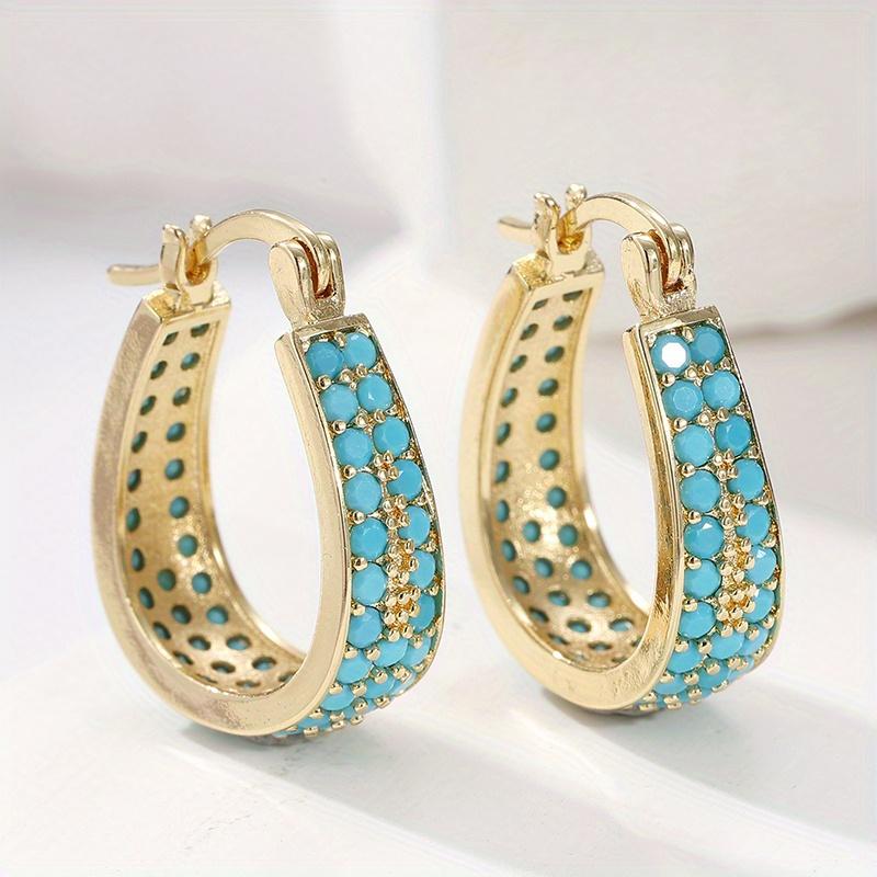 Concise Synthetic Turquoise Inlaid Hoop Earrings Women's Vintage Elegant Golden Plated Banquet Jewelry Accessory Crafts