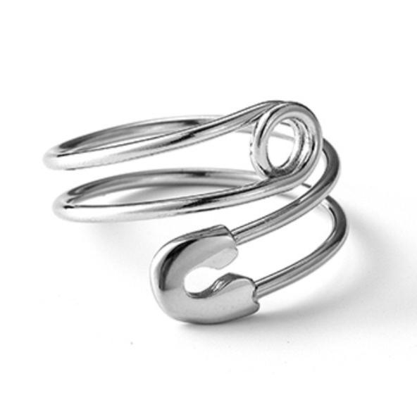 Boho Elegant Style, Christmas Holiday Gift Jewelry Adjustable Safety Pin Wrap Bypass Statement Ring,