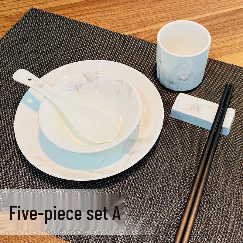 Luminous Lotus 5-Piece Ceramic Dinnerware Set