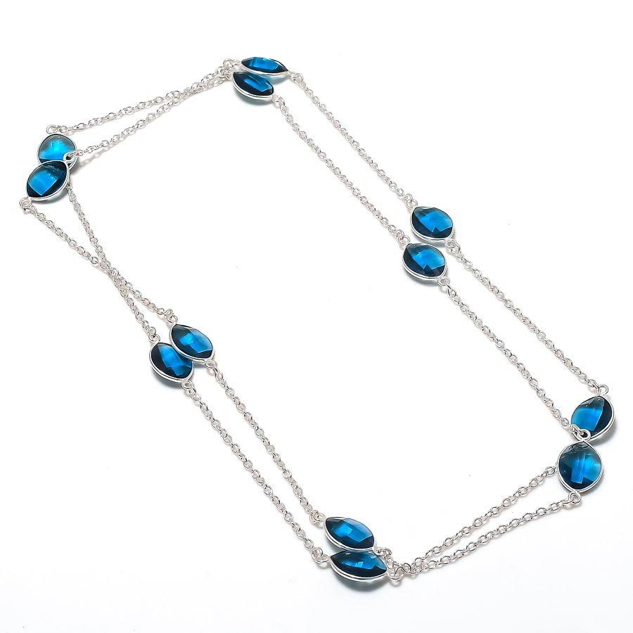 Natural London Blue Topaz Gemstone 925 Sterling Silver Jewelry Necklace 18" ASN-6012