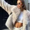 Women's Full-Length Faux Raccoon Fur Coat Open Front Warm Winter Maxi Outerwear