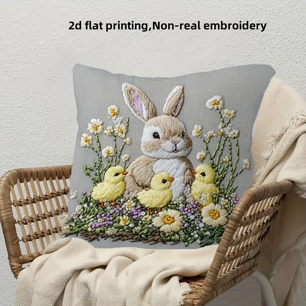 1pc Easter Bunny and Chick Pillowcase, Super Cute 2D Print