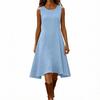 Women's Fashion Round Neck Long Sleeve Fitted Waist Casual Cotton-Linen Blend Dress