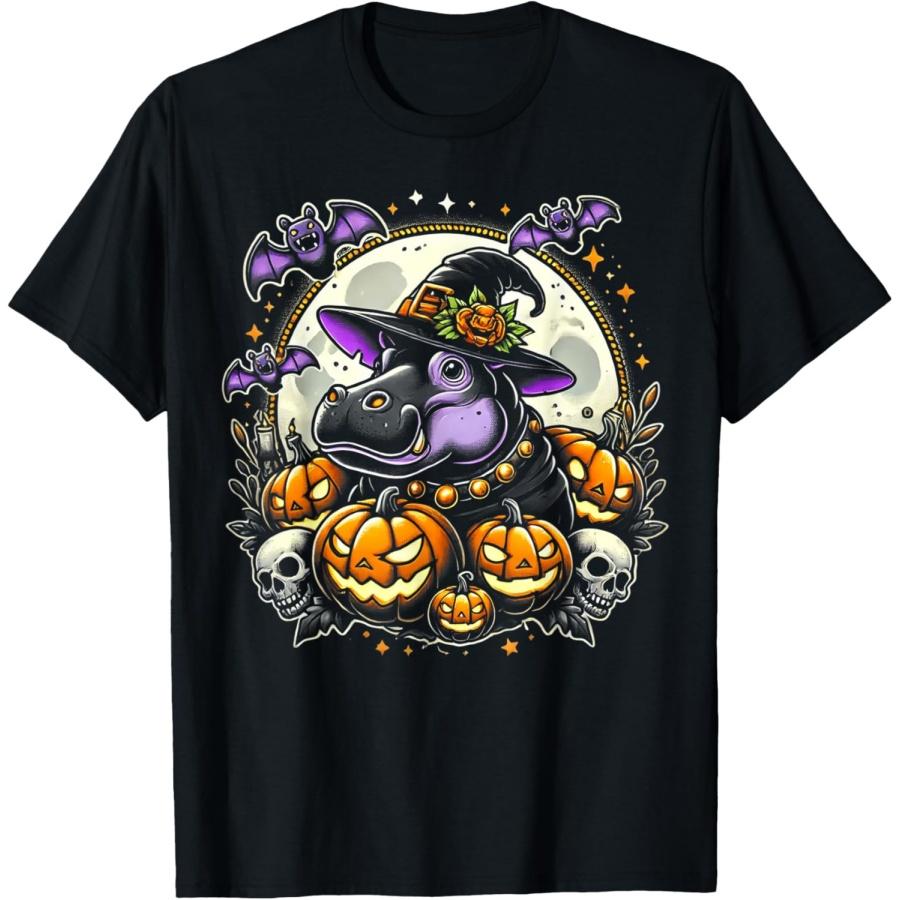Hippo Witch Halloween Design T-Shirt
