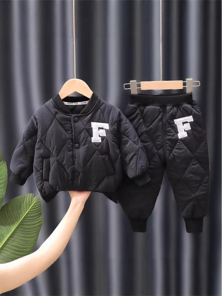 F-Shaped Kids' Winter Cotton Jacket Set with Zipper