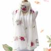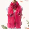 Gold Rose Embroidered Silk & Gauze Shawl for All Seasons - Women's Lace-Trimmed, Double-Layer Versatile Scarf