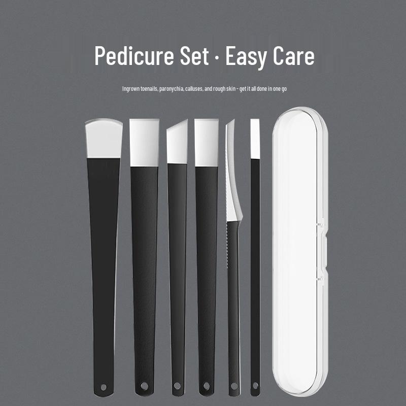 This specialized pedicure set is designed for the precise and effective care of foot health, offering a range of tools specifically crafted for the removal of ingrown toenails and calluses. The kit includes high-quality, stainless steel instruments engineered for durability and precision, ensuring a safe and comfortable grooming experience. Ergonomically designed handles provide excellent grip and control, making it easier to perform intricate foot care tasks. Ideal for both professional and personal use, this set is a reliable companion for maintaining healthy, comfortable feet.