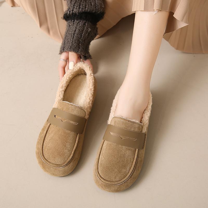Large size cotton shoes winter velvet wide fat feet pregnant women loafer beanie shoes fluffy shoes