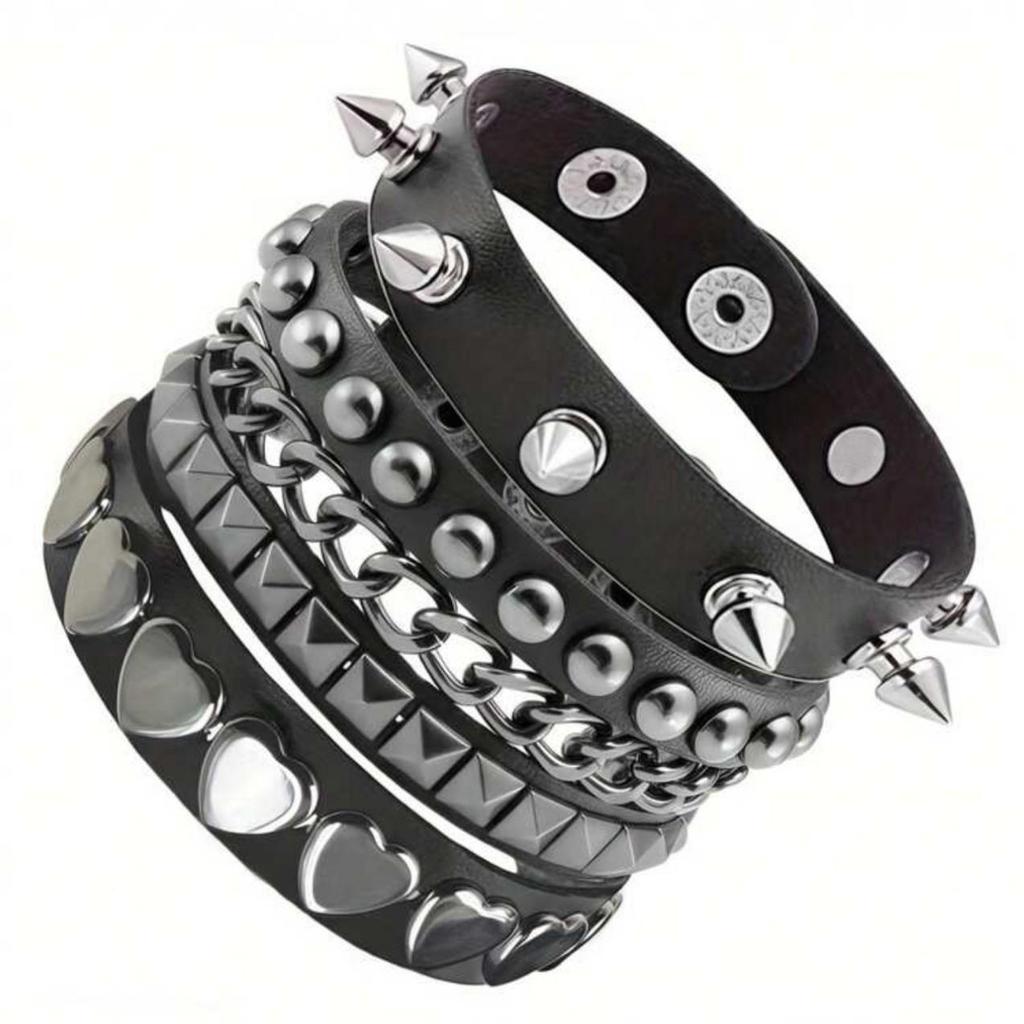 Férfi Punk Stílusú Többrétegű Bőrkarkötő Szegecsekkel - Hip Hop Divatkellék