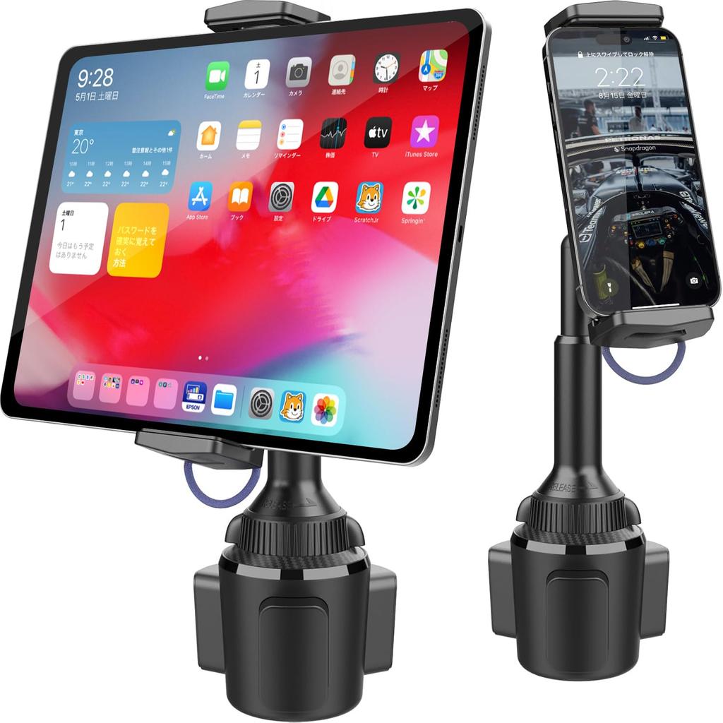 【Widely Adjustable Cup Base】Our improved iPad cup holder mount features a sturdy, wide-adjustable base (approximately 3-4 inches), ensuring a secure fit in most car cup holders. It thoroughly reduces shaking and rattle of your device, even on bumpy roads or at high speeds, providing exceptional stability.