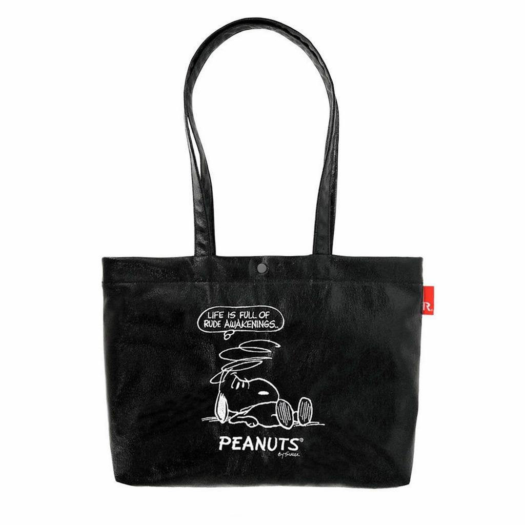 Rootote Snoopy Embroidered Horizontal Shoulder Tote Bag, Lightweight, IP A4 Size, Archacle Wide, Metallic, Peanuts-0Q 8445 (01 Black)