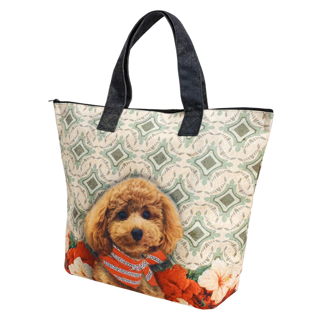 [Lucie dancette] Large Tote Bag with Zipper Top, Toy Poodle Pattern, Made in Japan, Large and Lightweight Shoulder Bag