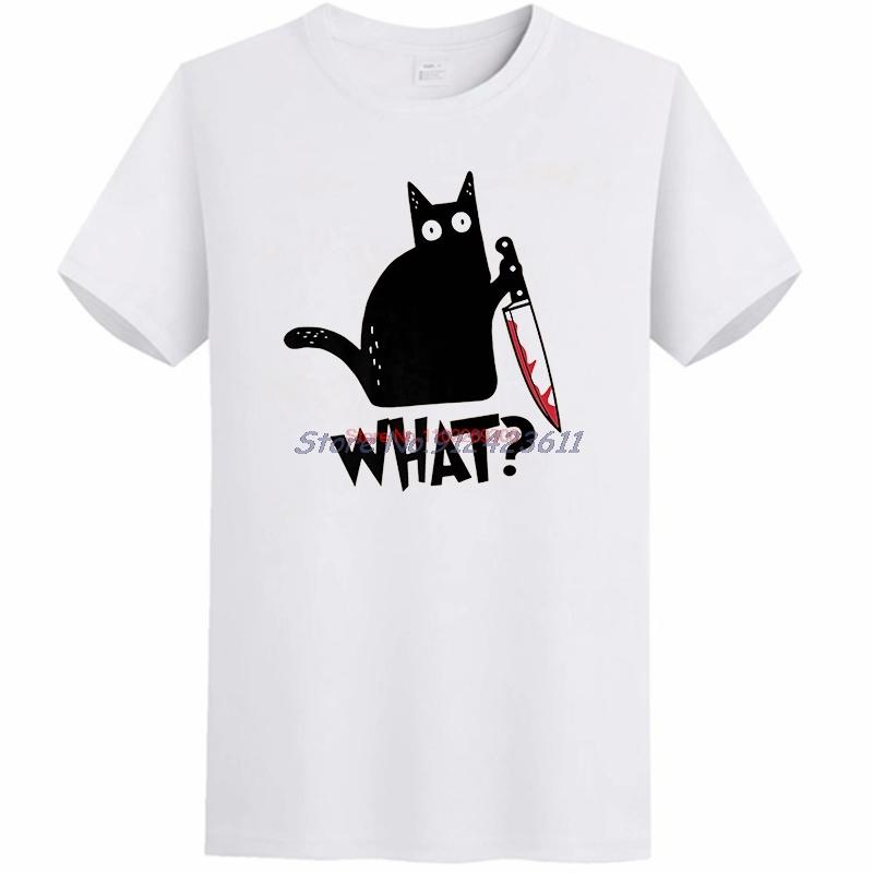 What Funny Black Cat Graphic T Shirts Murderous Cat With Knife Halloween Cotton New Shirts And TShirts Mens Print T Shirt