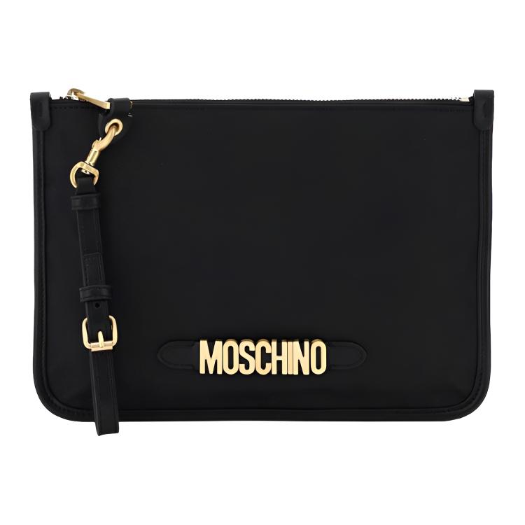 Moschino Front Metal Logo Detachable Wrist Handle Cotton Nylon PU Leather Clutch Women clutch Black 211735AAV000002-1555