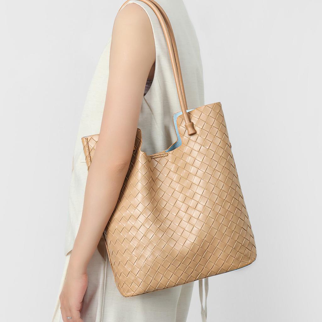 Tote bag new woven hand-held large bag cowhide commuter shoulder bag women's large-capacity leather women's bag