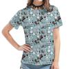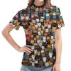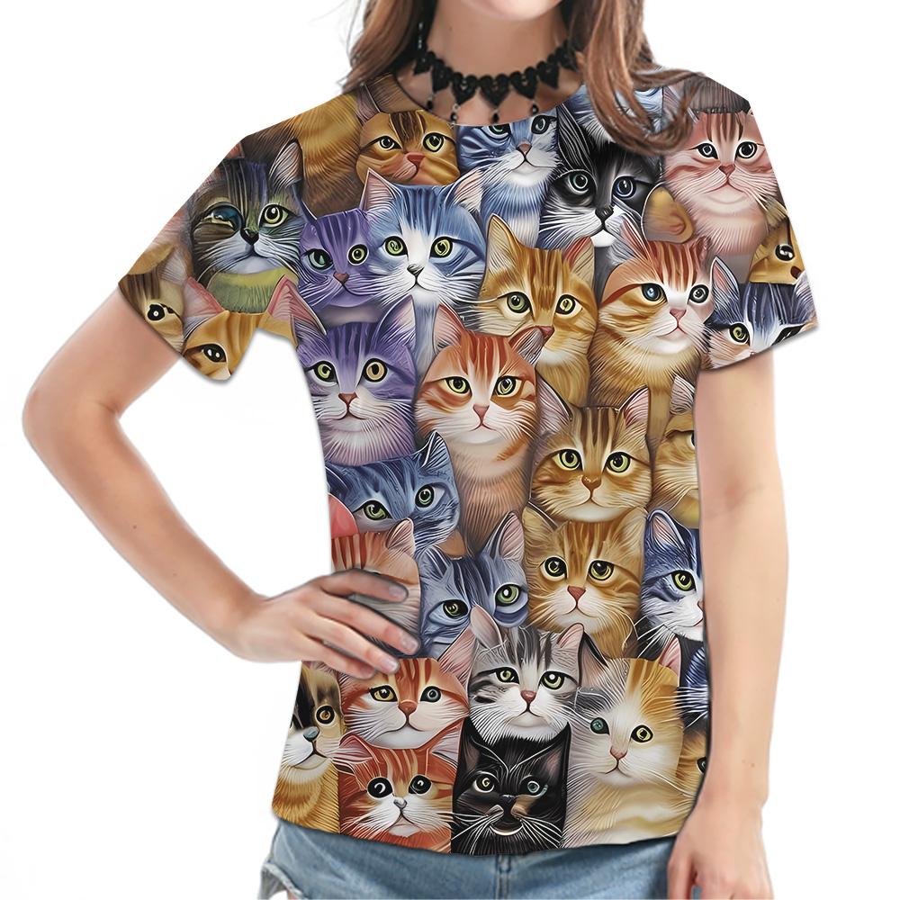Women's Black Short-Sleeve Tee - Colorful Cat Pattern Graphic Print, Cute Animal All-Over Design Casual Top, Stylish Daily Wear