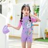 This two-piece long-sleeve swimsuit is designed to provide optimal sun protection for kids during beach outings. Made from quick-drying polyester material, it ensures comfort and ease of movement both in and out of the water. The vibrant design and practical features make it an ideal choice for young adventurers, keeping them shielded from the sun's rays while they enjoy fun-filled days at the beach.