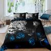 Rose Soft Duvet Cover Set, Rose From Blue Flame Print,Valentine's Day Soft Duvet Cover Set, Warm Comforter Cover Floral Beding Set,Pilowcase