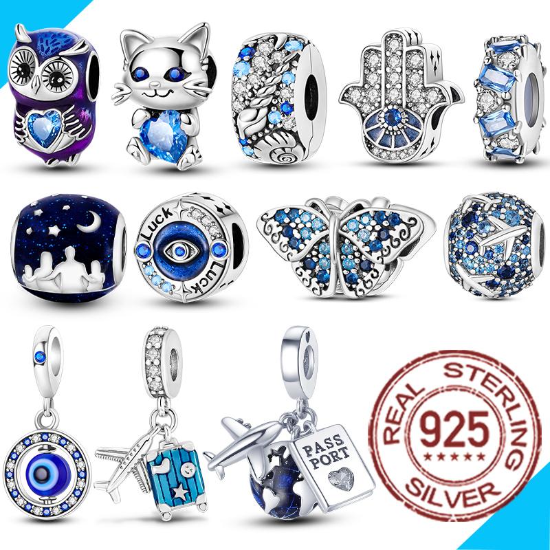 Blue Series Copper Bead Pendant Fits Bracelets DoItYourself Butterfly Cat Plane For Woman Genuine Charm Fashion Jewellery