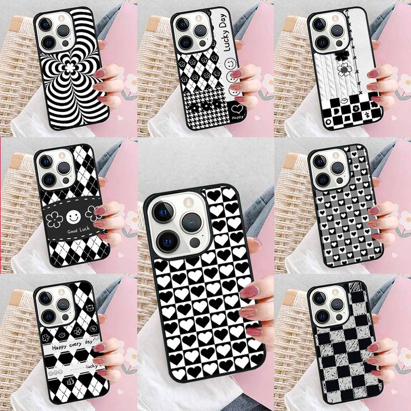 Luxury Chessboard Grid Love Heart Phone Case For iPhone 17 Air 15 16e 14 13 Pro Max Coque 12 11 Pro Max PLUS cover